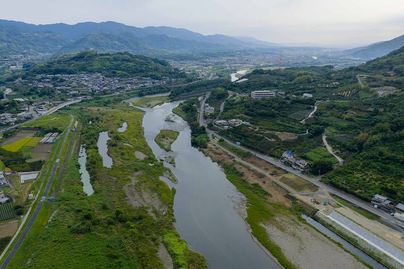 道の駅:紀の川万葉の里から離発着 紀の川上空を飛行しました。