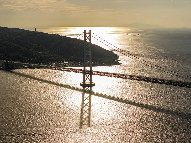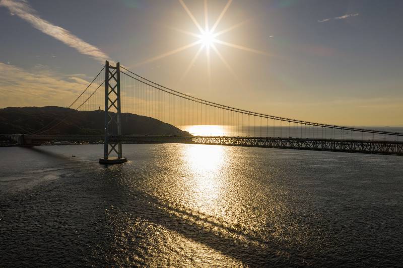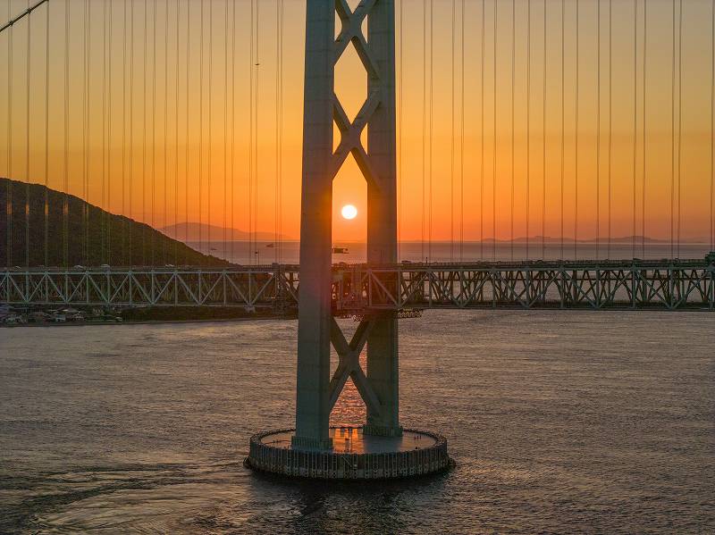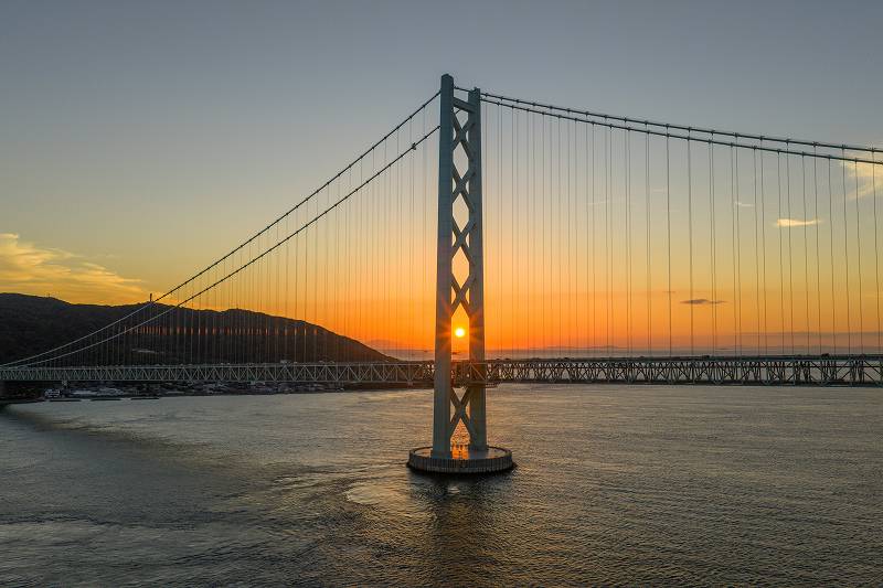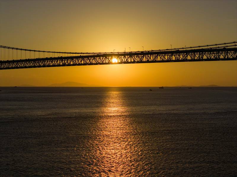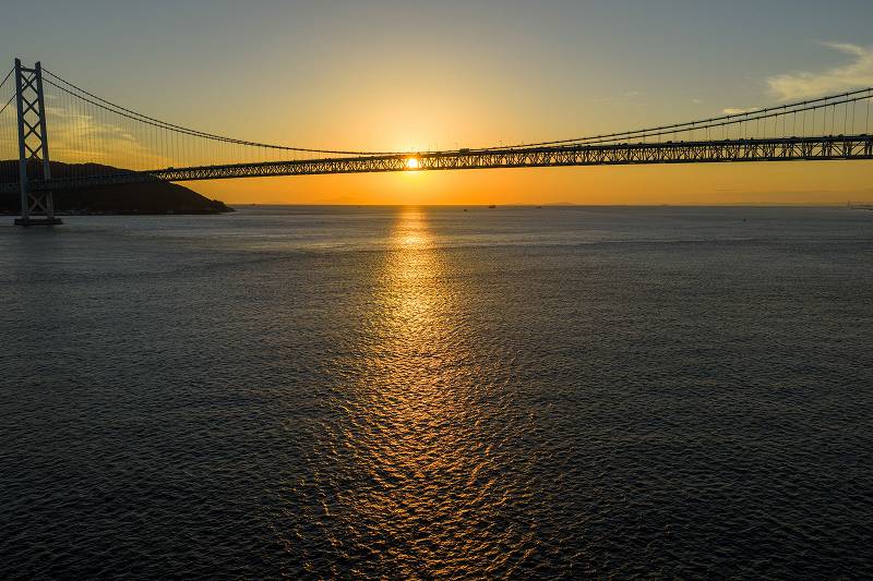 明石海峡夕景天気が良く夕陽が沈む瞬間をバッチリ撮影:高高度350m